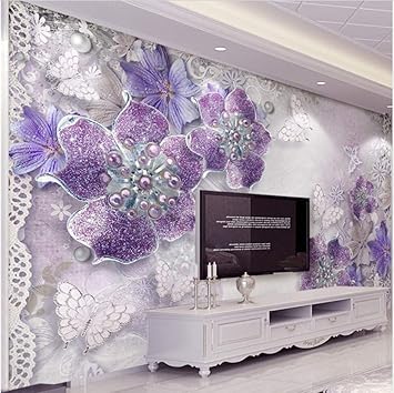 Custom Purple Flower Silk Wallpaper Living Room Bedroom Design